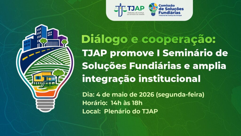 Com o propósito de assegurar direitos constitucionais fundamentais e promover a qualificação técnica dos agentes públicos, a uniformização de procedimentos e o aprimoramento da prestação jurisdicional, o Tribunal de Justiça do Amapá (TJAP), por meio da Comissão de Soluções Fundiárias do TJAP, realizará, no dia 4 de maio de 2026, das 14h às 18h, no Plenário Desembargador Constantino Brahuna, o “I Seminário de Soluções Fundiárias”.