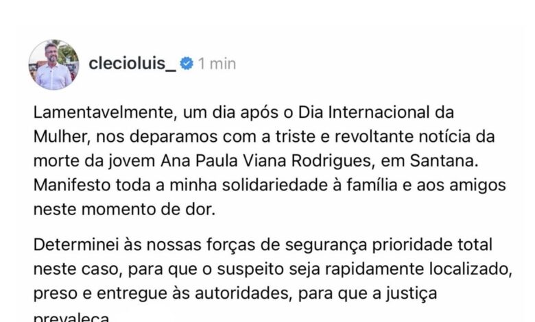 O governador do Amapá manifestou pesar pela morte da jovem Ana Paula Viana Rodrigues, registrada em Santana, e prestou solidariedade à família e aos amigos neste momento de dor.