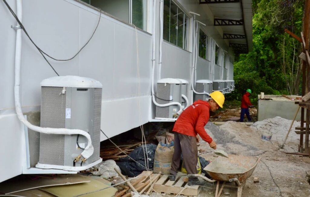 O Governo do Amapá avança nas obras da nova Escola Estadual Francisco Oliveira Filho, localizada no distrito de Anauerapucu, no município de Santana. Nesta fase final da construção, as equipes concentram os trabalhos na conclusão do projeto de paisagismo e na implantação do sistema misto de abastecimento de água.