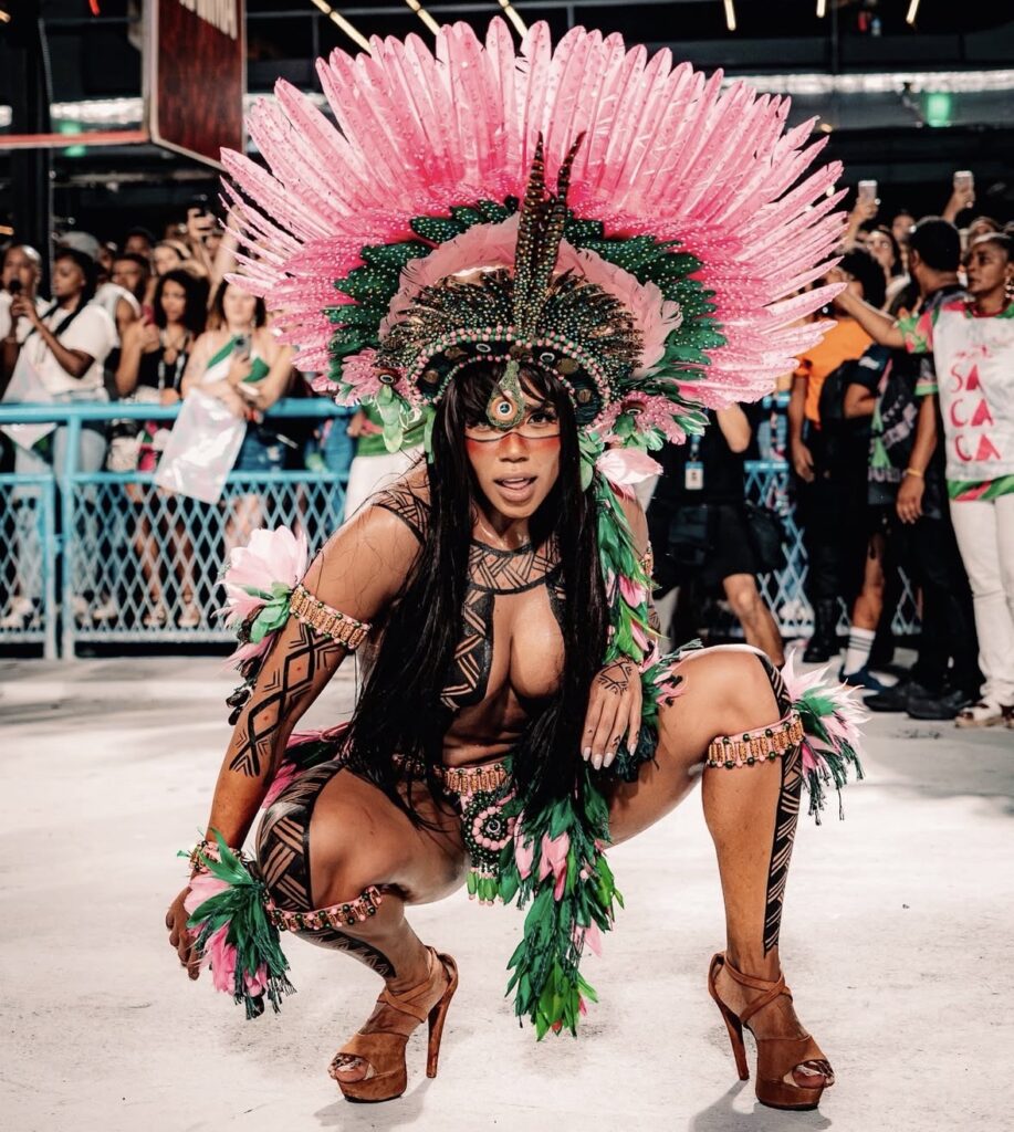A Estação Primeira de Mangueira foi a terceira escola a cruzar a Marquês de Sapucaí na noite de ensaios técnicos desta sexta-feira (30). A Verde e Rosa apresentou uma prévia do enredo “Mestre Sacaca: do Encantado ao Tucuju – o Guardião da Amazônia Negra”, assinado pelo carnavalesco Sidney França.