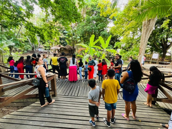 Crianças, adolescentes e pais ou responsáveis que são acompanhados pelo Centro de Atendimento às Vítimas “Nós Pertencemos” (CAVINP) passaram a manhã desta quarta-feira (17) no Museu Sacaca, em atividades recreativas, visita monitorada, contação de histórias e distribuição de brindes natalinos. A programação marca o encerramento das atividades do Centro em 2025. A coordenadora da unidade, promotora de justiça Fábia Regina, e servidores recepcionaram as famílias.