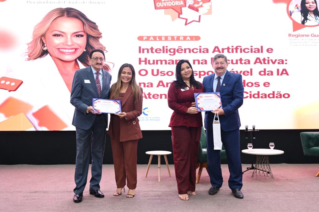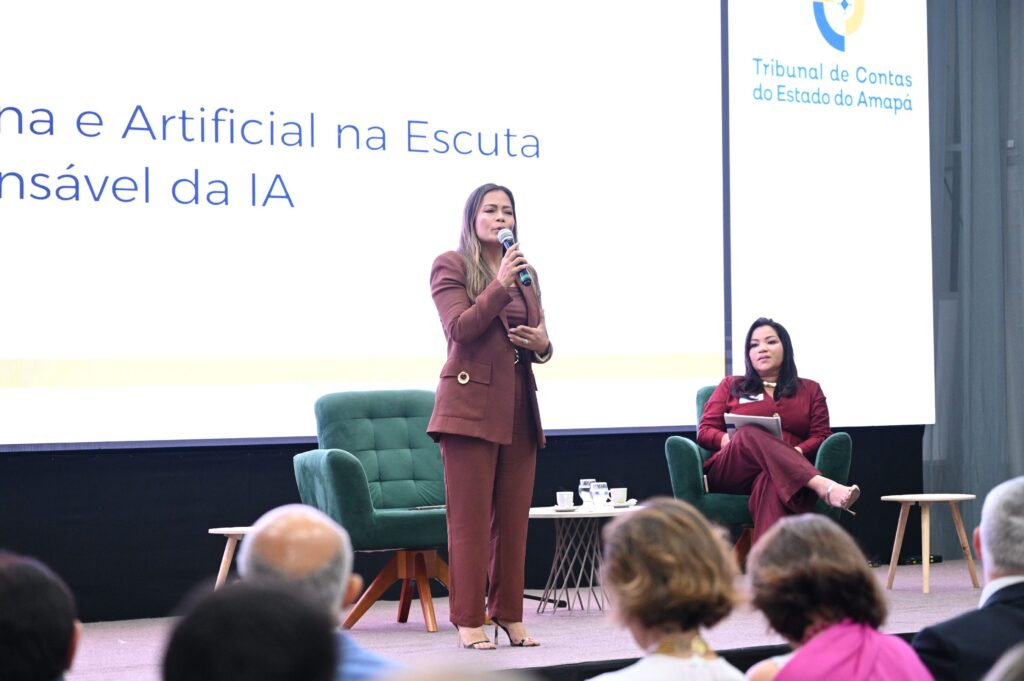 Na sequência, a procuradora do Estado do Amapá, Jeane Martins, abordou o tema “Inteligência Artificial e Humana na Escuta Ativa”, com mediação da auditora do TCE/AP, Regiane Guedes. A palestra enfatizou o uso responsável da tecnologia na análise de dados e no atendimento ao cidadão, aliando inovação à ética e à transparência.